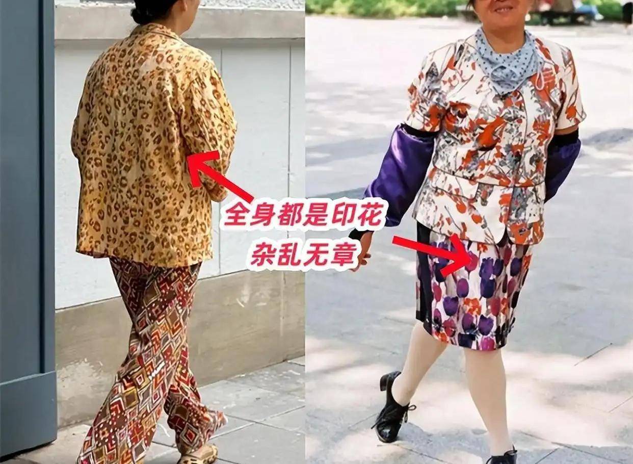 ↓图中穿花衣服的样子是不是屏幕前的你!图案花哨、颜色艳丽,瞬间吸引目光,但定睛一看,只想说:“好土”!犹如街边“大妈”。